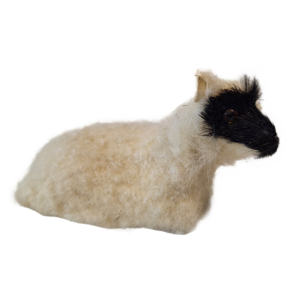 Ein stehendes Schaf mit Glocke sowie ein weiteres Schaf und ein Lamm gehören zu dieser kleinen Herde. Die Körperhaltungen der Lämmer variieren.Länge Schaf: 12cm , Länge Lamm: 9cmDie Schafe und Lämmer aus der Felltierserie sind mit echtem Schaffell überzogen. Sie sind unbeweglich, aber in den Haltungen "stehend", "fressend" und "liegend" erhältlich. Sie passen in der Größe zu 25-30cm große Figuren und zu den anderen angebotenen Felltieren, dem Esel, den Ochsen und den Kamelen.