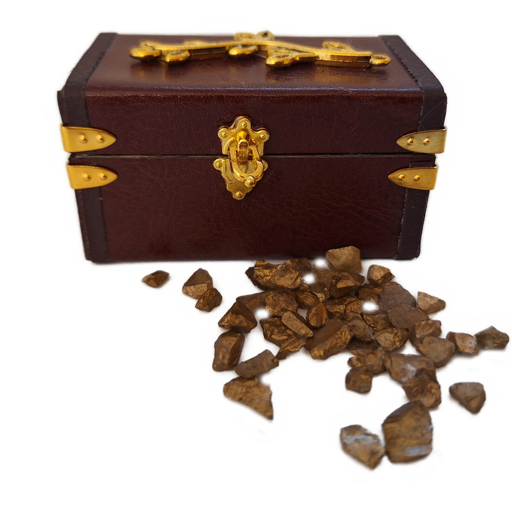 Balthasar bringt dem Jesuskind Gold in einer schönen Schatztruhe.