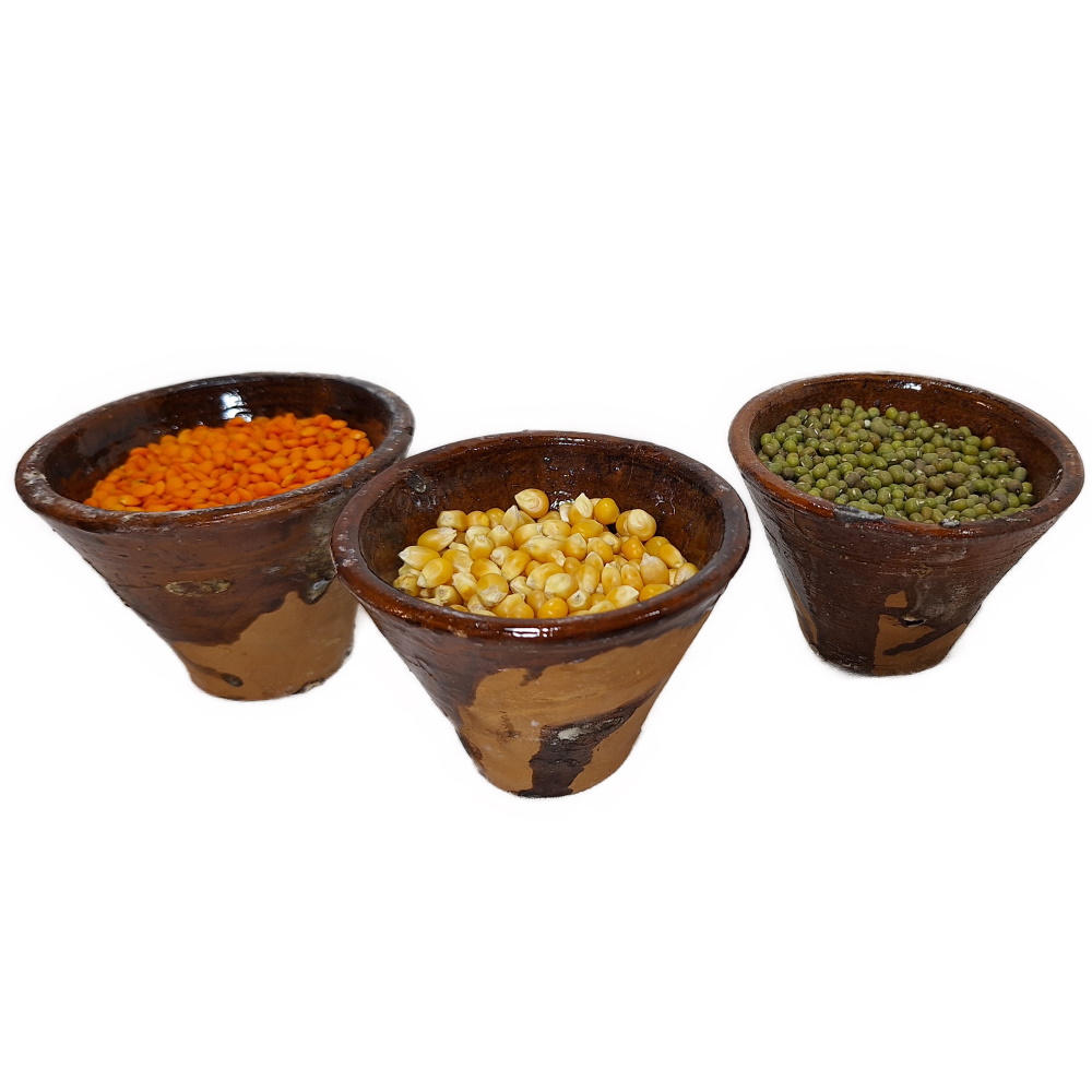 In Deutschland handgetöpfertes 4-teiliges Set & 3 selbstgebackene Fladenbrote zur Darstellung des Brotbackens in früherer Zeit. Durchmesser Teller 9cm