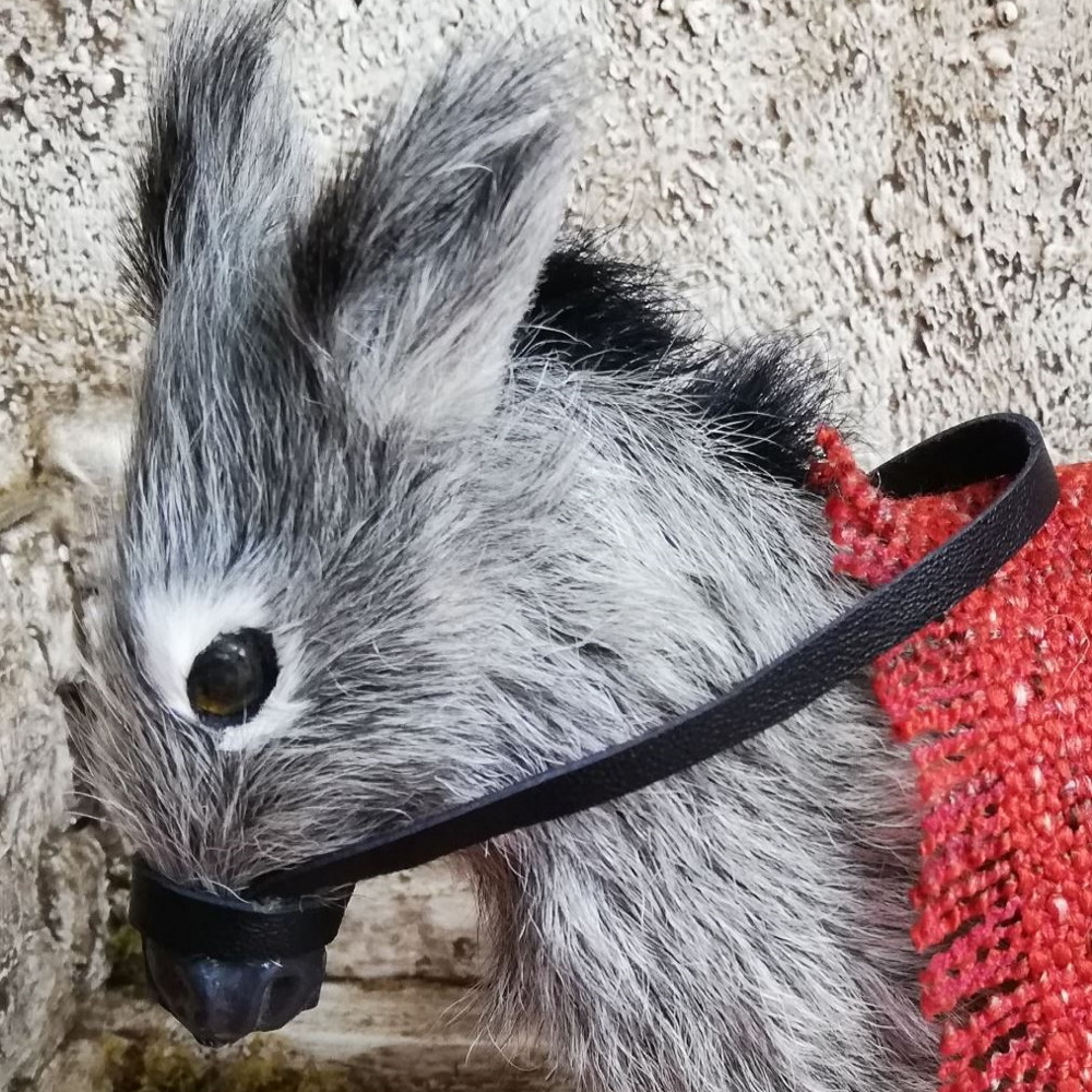 Dieser Esel gilt als ausgewachsenes Tier zu den 30cm hohen Erzählfiguren. Er ist 22cm lang und 18cm hoch. Die stabile Trense aus Leder fertigen wir in unserem Atelier.Stoff und Farbe der Satteldecke variieren je nach Vorrat.Alle Esel sind mit Ziegenfell überzogen und wunderschön exakt ins Detail gearbeitet.Fell ist ein Naturprodukt und so hat jedes Tierchen einen etwas anderen Grauton.