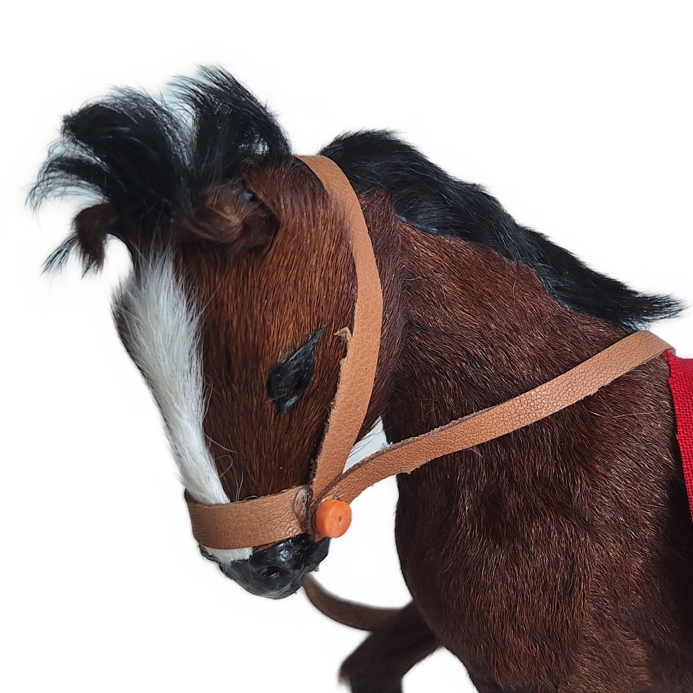 Es ist wunderschön gefertigt. Die innenliegende fixe Form ist mit Rinderfell überzogen und die Details sind wunderschön herausgearbeitet. Wir haben eine edle Satteldecke und eine Ledertrense dazu gefertigt. Beides ist abnehmbar.