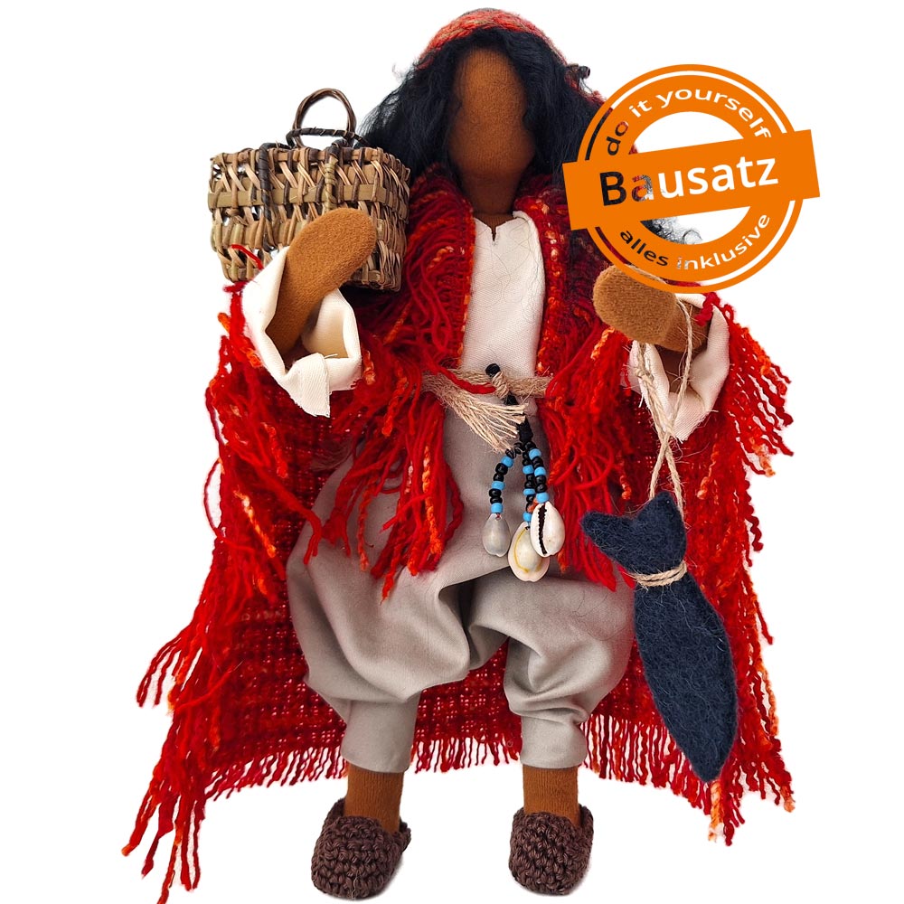 Du erhältst das Arbeitsmaterial, um Apostel Andreas herstellen zu können. Zum Set gehört auch die Kleidung und alles Zubehör, das du auf den Bildern siehst.  Andreas ist mit der Pumphose und dem schönen roten Wollumhang sehr besonders gekleidet und hat tolle Accessoires dabei. Auch die handgehäkelten Schuhe sind sehr speziell.