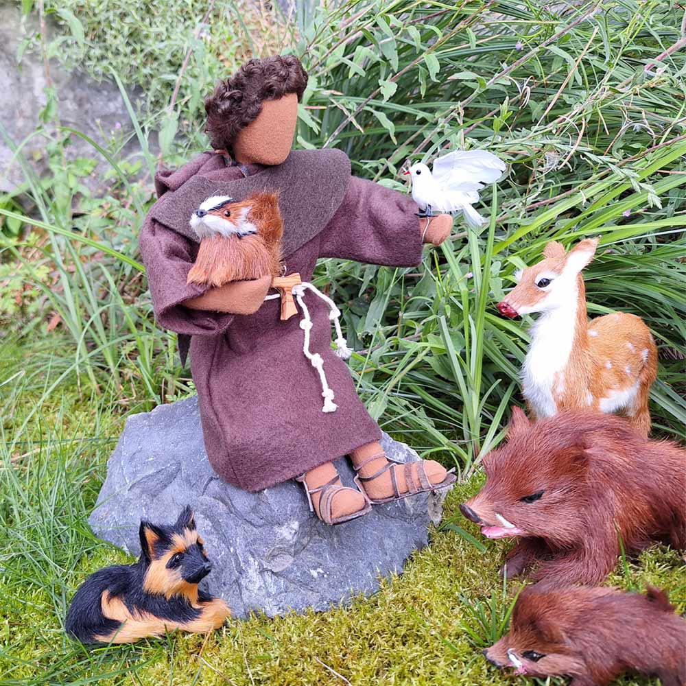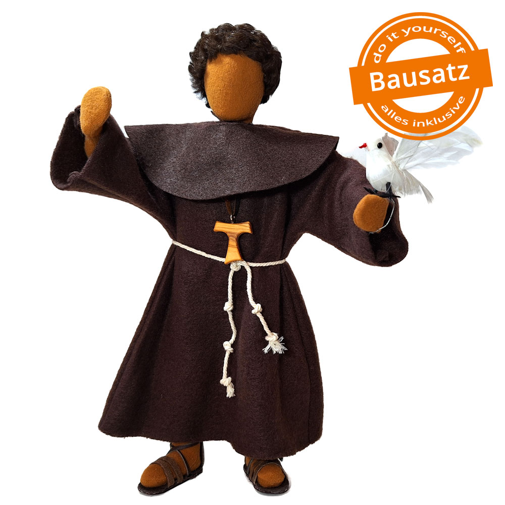 Franz von Assisi - der Heilige Franziskus Kutte Tau Sandalen Taube