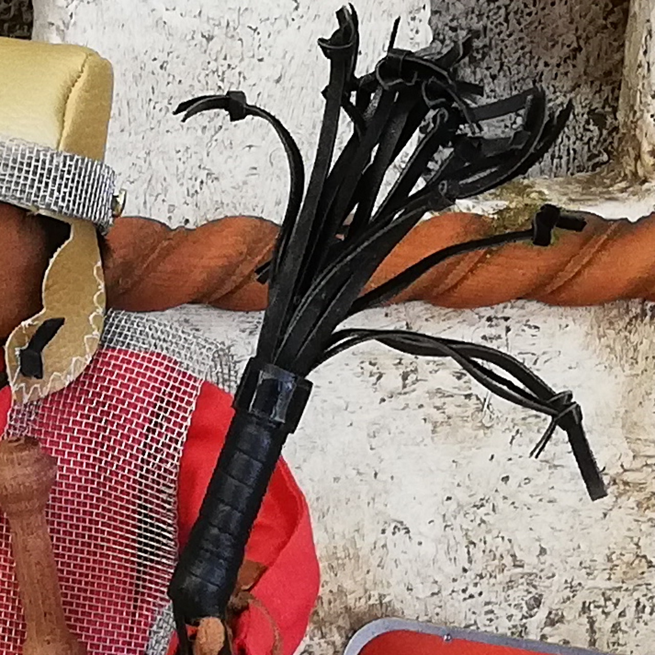 Die Geissel ist aus Leder. Sie ist 12cm lang + Haltegriff
