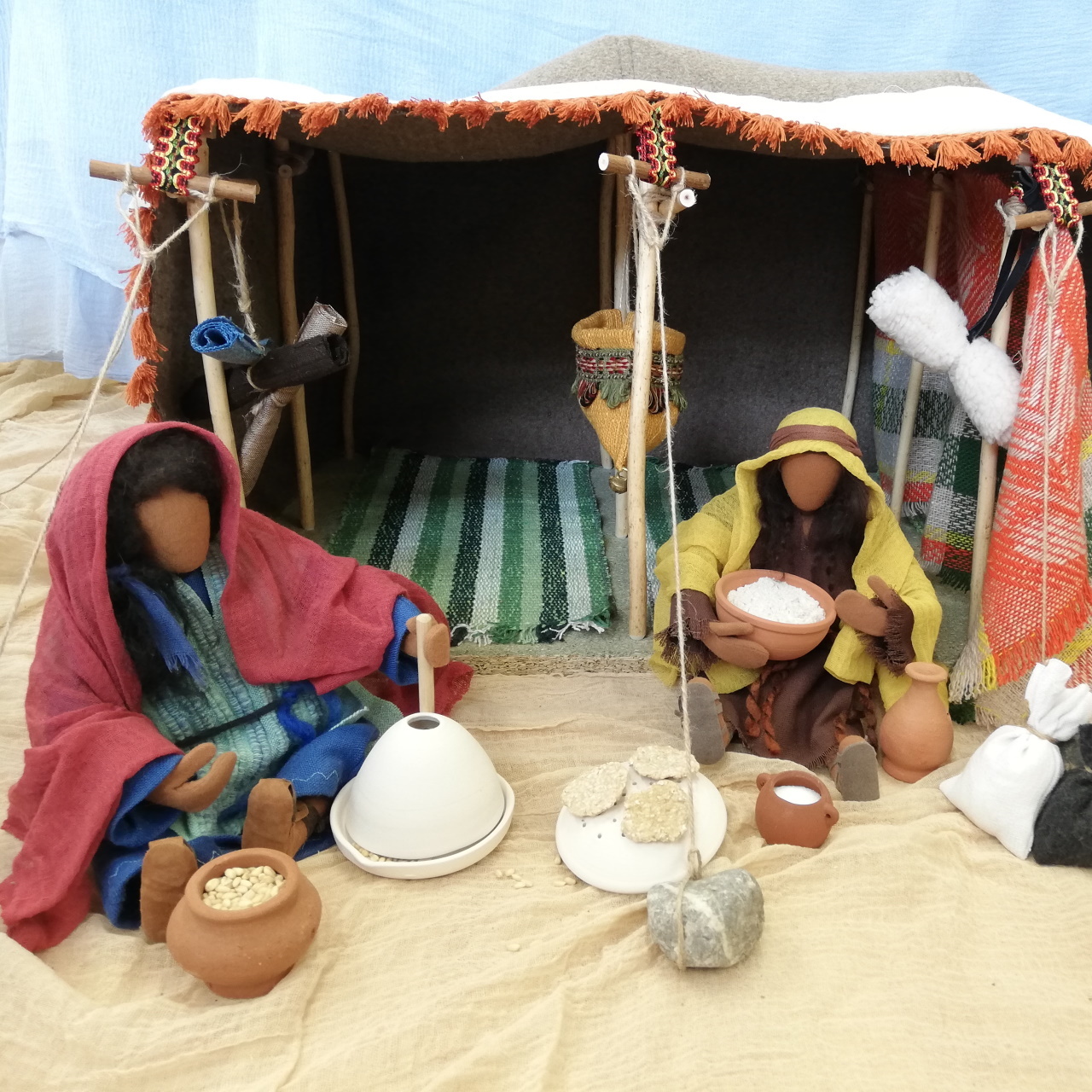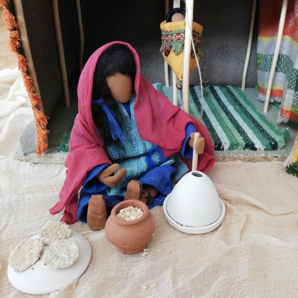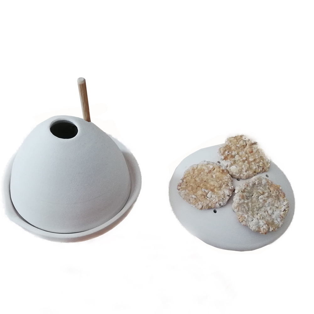 In Deutschland handgetöpfertes 4-teiliges Set & 3 selbstgebackene Fladenbrote zur Darstellung des Brotbackens in früherer Zeit.