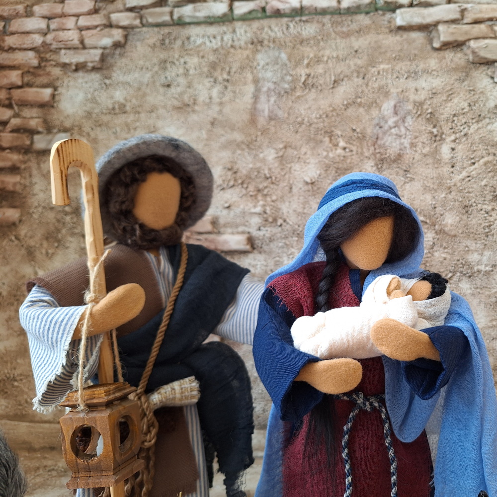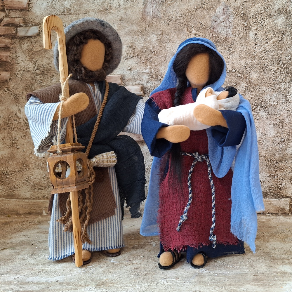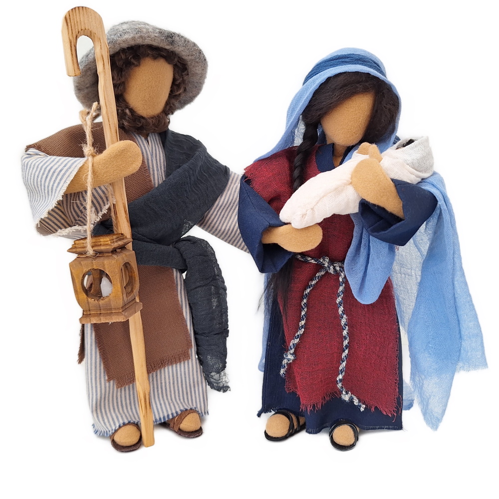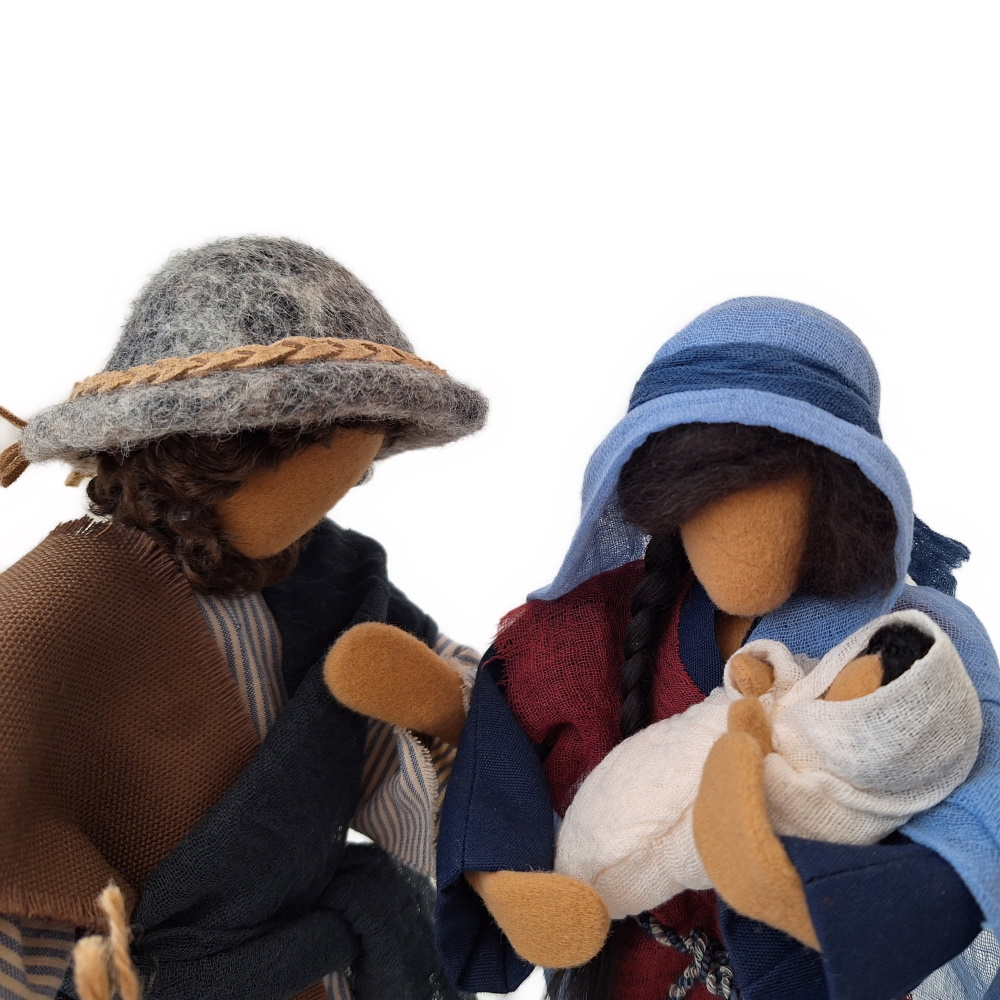 Heilige Familie in blau-rot-Tönen Kleidung Schuhe Filzhut