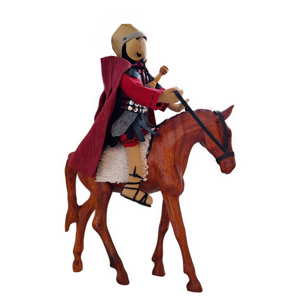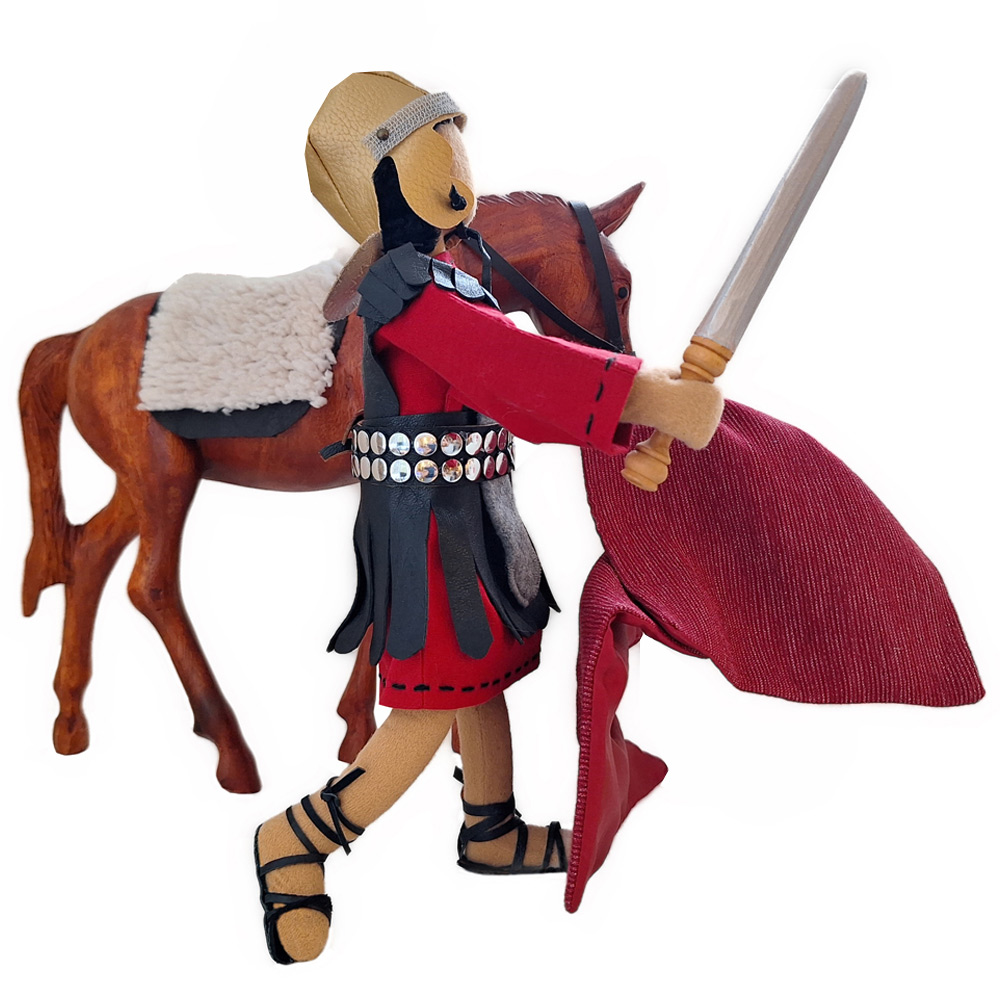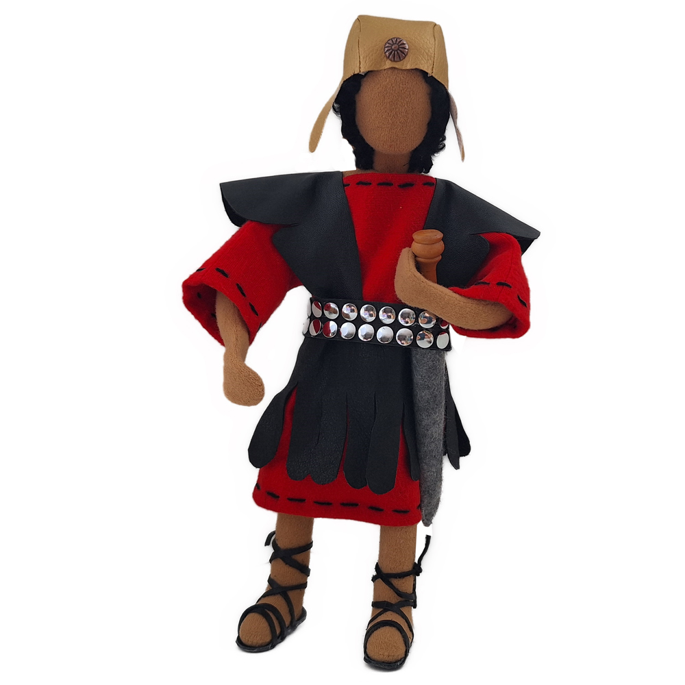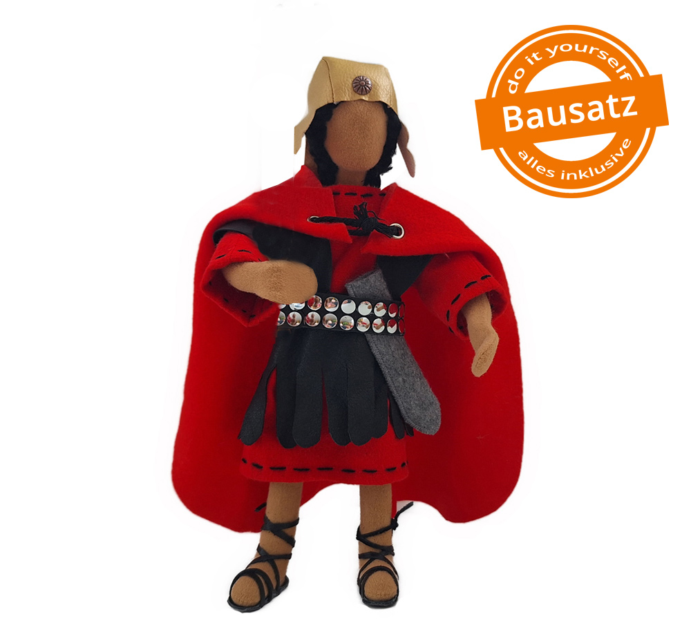Der römische Soldat ist eine besondere Charakterfigur. Ich frage mich immer, was die oft sehr unschönen Handlungen und Taten sowie das Gehorchen müssen mit einem Soldaten machen. Sicherlich wird da mancher innerer Konflikt ausgetragen. Und sicherlich gibt es auch manch lichtvollen Gottesfunken ins Herz, um ein Umdenken in der Seele zu bewirken.Gerade auch aus diesen Gründen haben wir uns sehr liebevoll um die Gestaltung unserer Soldatenfigur gekümmert. Der handgenähte Helm sowie der Mantel gehören zur Grundausstattung. Alles weitere Zubehör kannst du je nach Wunsch separat dazu bestellen. Es sind dies ein handgefertigtes Holzschwert, ein Römerschild, ein Pilum = röm. Lanze sowie eine Geissel.