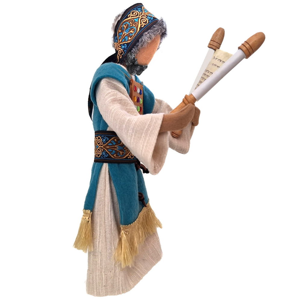In alter orientalischer Handwerkskunst sind die Halterungen unserer Thorarolle mit dem Fuss gedrechselt. Jedes Teil ist ein Unikat. Zwischen den beiden Griffen ist eine Schriftrolle mit einem hebräischen Originaltext gespannt. Wenn die Thorarolle zusammengerollt wird, kann sie mit dem schönen Band gebunden werden.Höhe der Schriftrolle: 12,5cmDer verwendete Text wurde reformjüdisch übersetzt und lautet: "Höre, Israel, der Herr ist unser Gott, der Herr ist einzig. (Dtn 6,4) Gepriesen sei Gottes ruhmreiche Herrschaft immer und ewig! (mJoma 6,2) Darum sollst du den Ewigen, deinen Gott, lieben mit ganzem Herzen, mit ganzer Seele und mit ganzer Kraft. Diese Worte, auf die ich dich heute verpflichte, sollen auf deinem Herzen geschrieben stehen. Du sollst sie deinen Kindern erzählen. Du sollst von ihnen reden, wenn du zu Hause sitzt und wenn du auf der Straße gehst, wenn du dich schlafen legst und wenn du aufstehst. Du sollst sie als Zeichen um dein Handgelenk binden. Sie sollen als Merkzeichen auf deiner Stirn sein. Du sollst sie auf die Türpfosten deines Hauses und in deine Tore schreiben. (Dtn 6,5-9)"