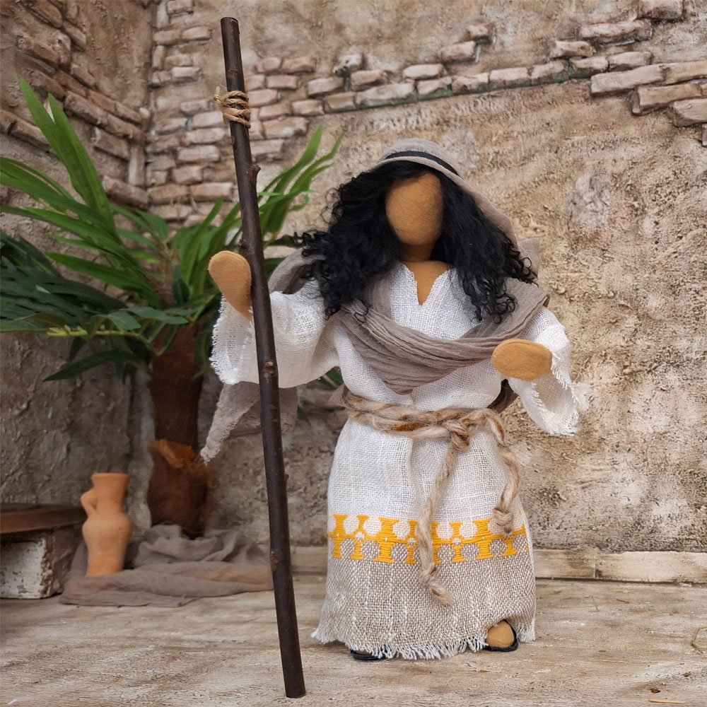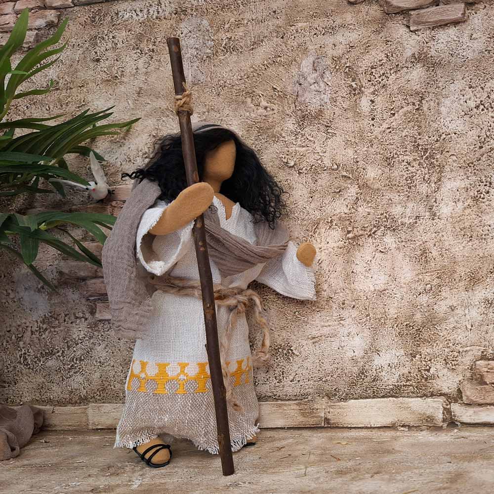 Jakobus war einer der fünf Fischer am See Genezareth. Wir halten ihn neutral, damit er auch zur Gestaltung der Adventszeit gut als Hirte verwendet werden kann und schließlich an Weihnachten den Weg zur Krippe findet.