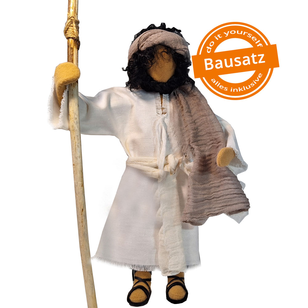 Jakobus war einer der fünf Fischer am See Genezareth. Wir halten ihn neutral, damit er auch zur Gestaltung der Adventszeit gut als Hirte verwendet werden kann und schließlich an Weihnachten den Weg zur Krippe findet.