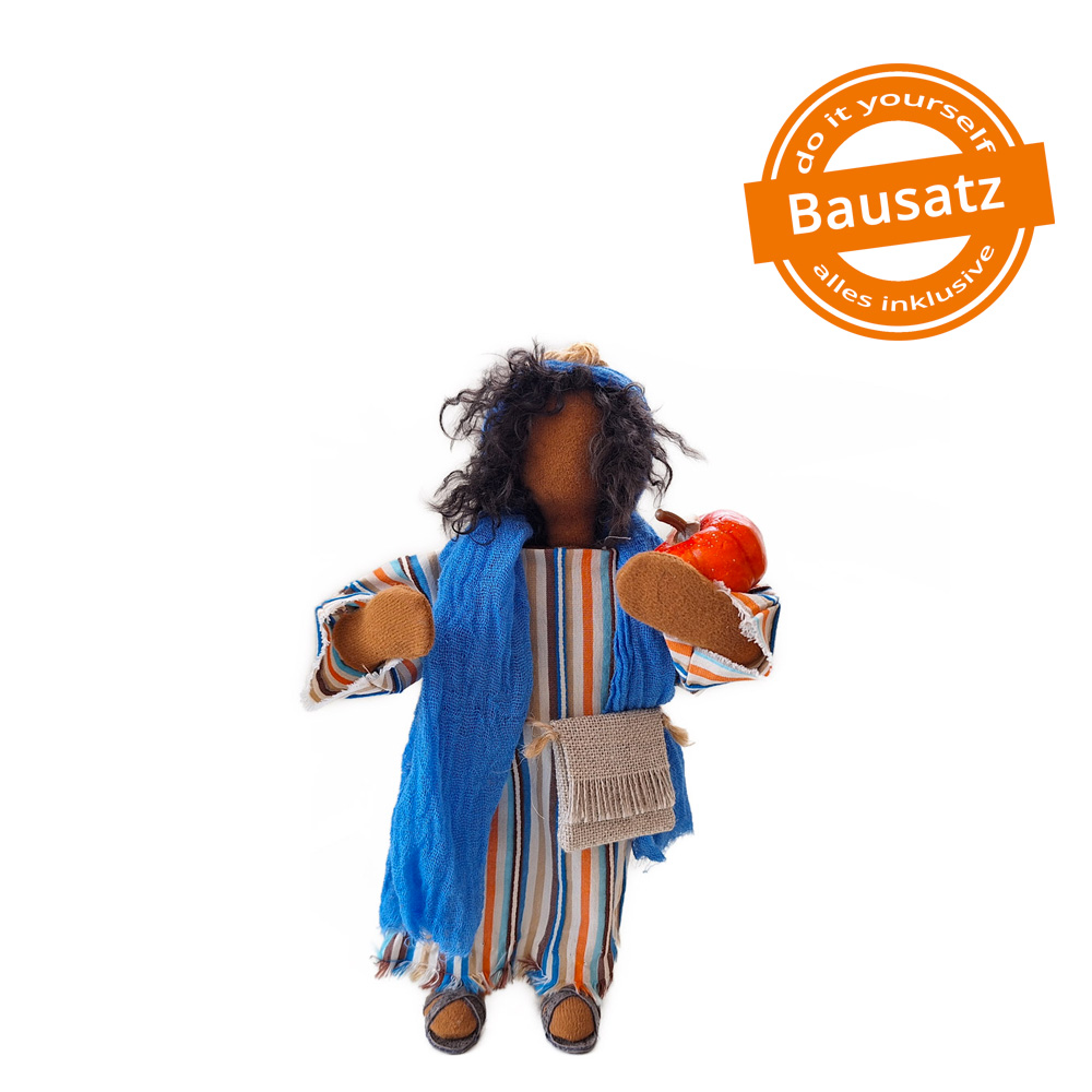 Produktinformationen "Junge mit Kürbis - 20cm hoch Kleidung Schuhe Tasche Kürbis"