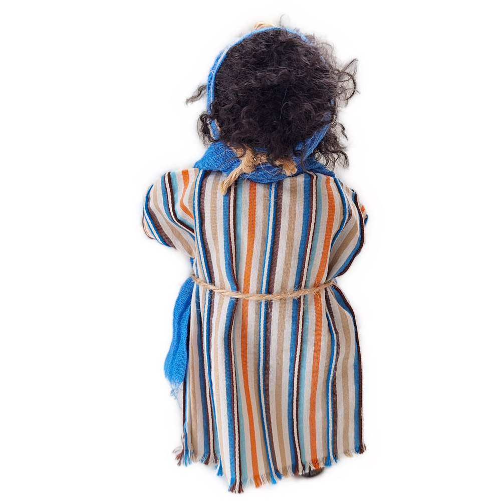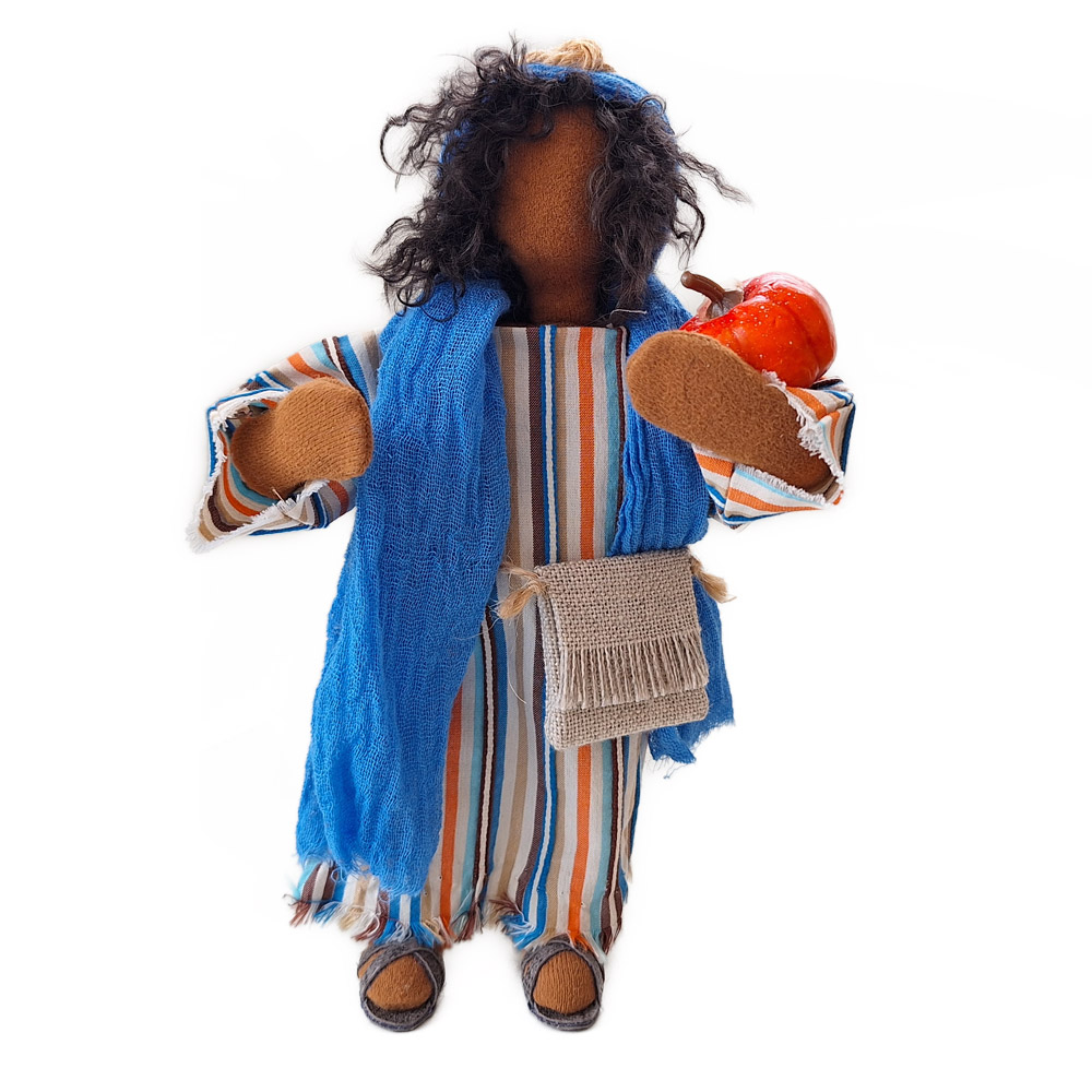 Mit 12 Jahren suchte Maria lange nach ihrem Sohn und fand ihn schließlich in intensiven Gesprächen mit den Rabbinern im Tempel. Die Kinderfigur Jesus ist 20cm hoch und kann auch für andere Szenen mit Kindern jederzeit verwendet werden.