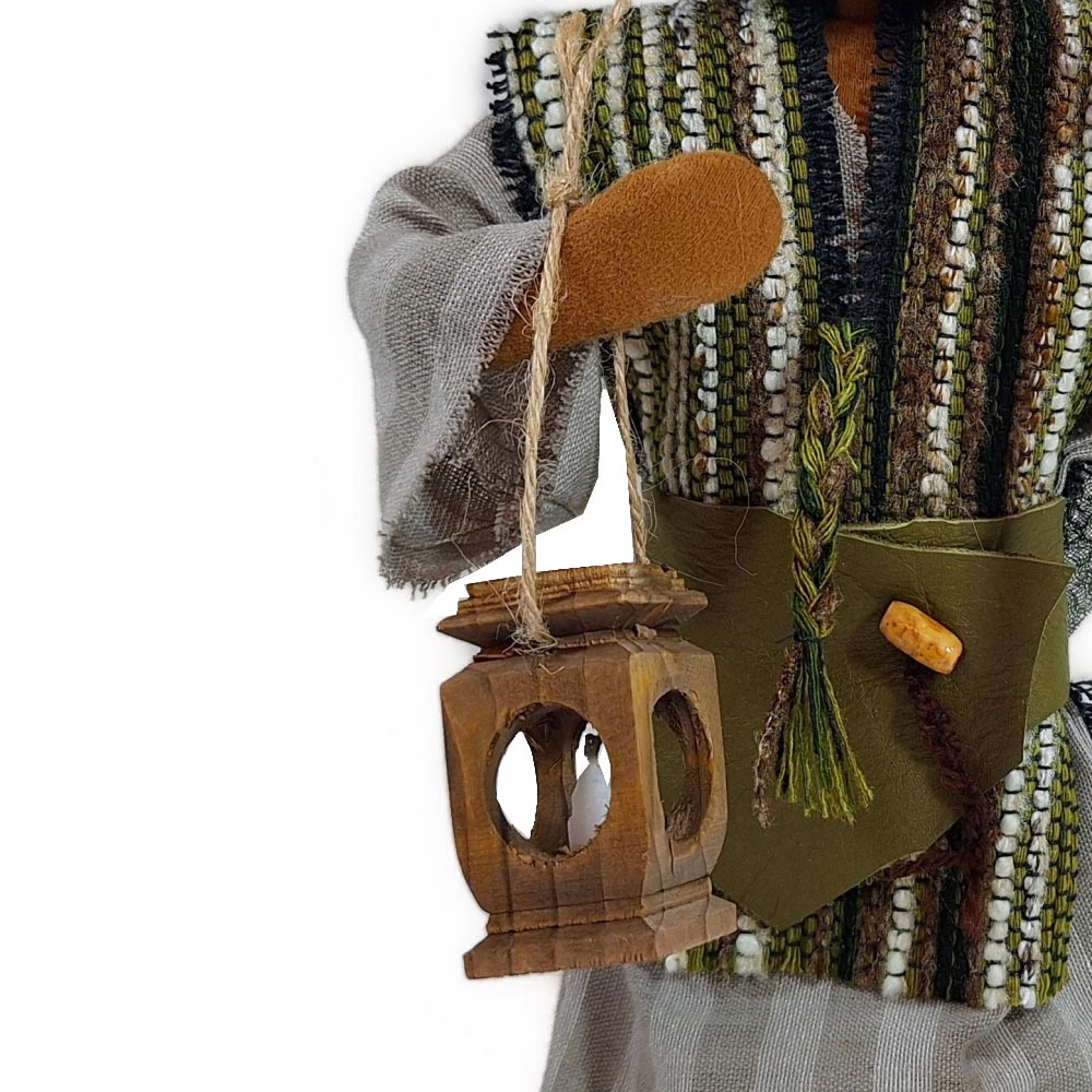Josef trägt in der Grundausstattung eine schlichte Kopfbedeckung. Gerne wird der Heilige Josef mit Hut dargestellt. Wir filzen ihn von Hand und wenn du ihn möchtest, bestelle ihn bitte separat dazu. Wir gestalten dann die Figur mit Hut.Du erhältst die im Inland handgefertigte Laterne sowie den handgeschnitzten Stab dazu.