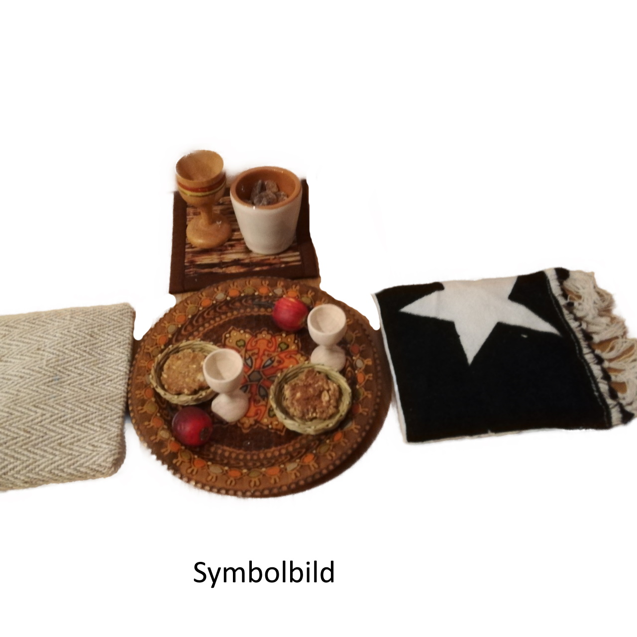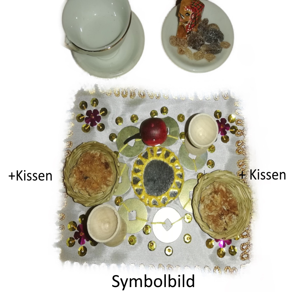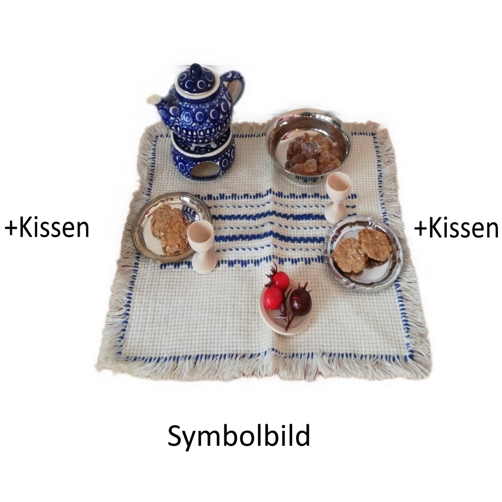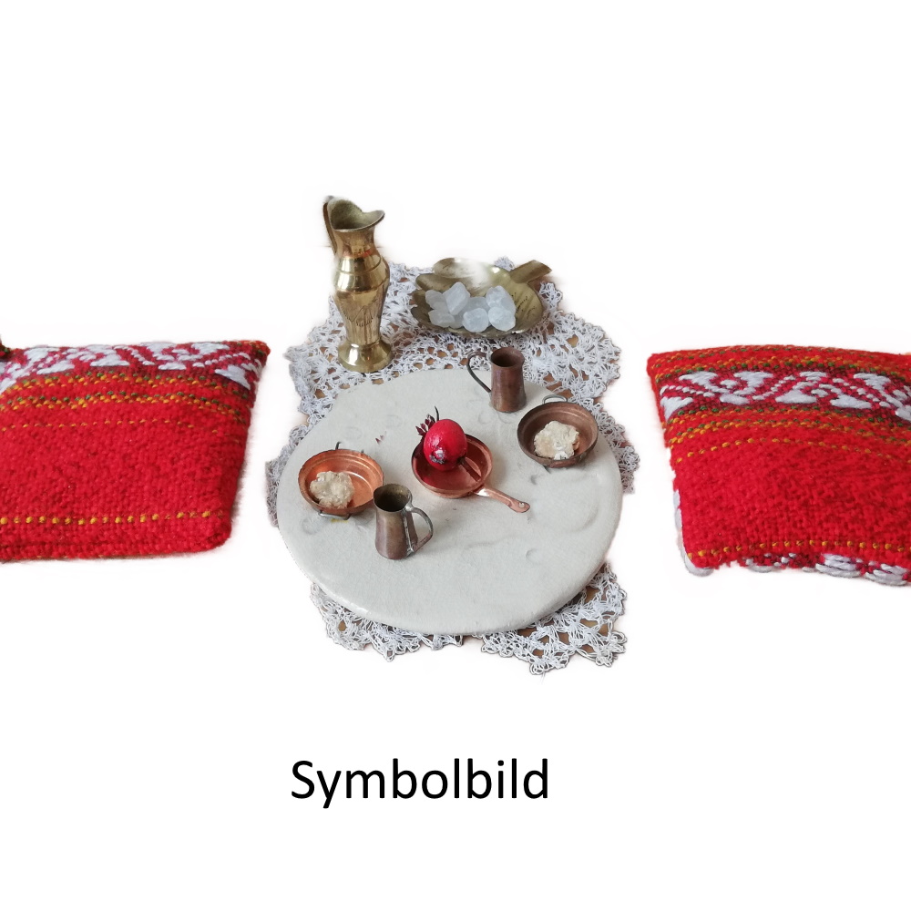 Produktinformationen "Nomadenszene - Essplatz mit Gedecken und Sitzkissen"