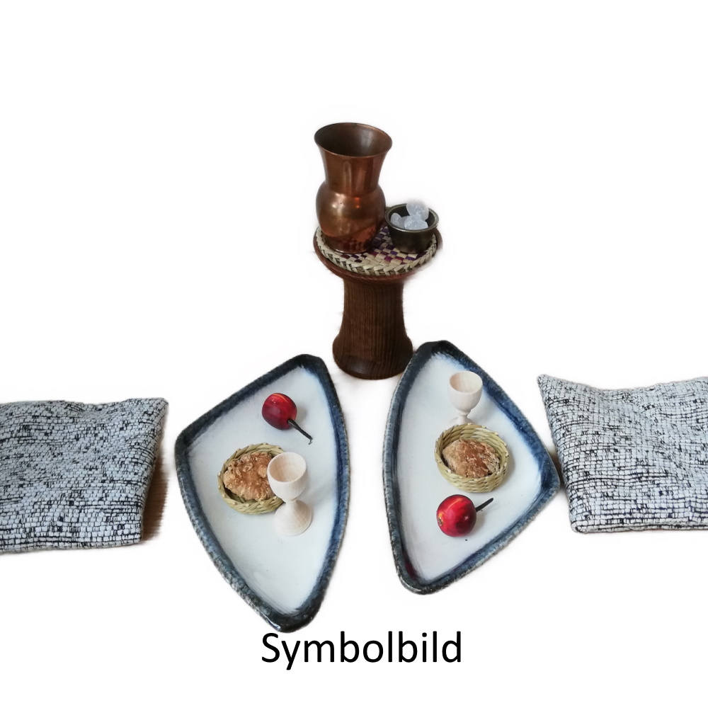 Nomadenszene - Essplatz mit Gedecken und Sitzkissen