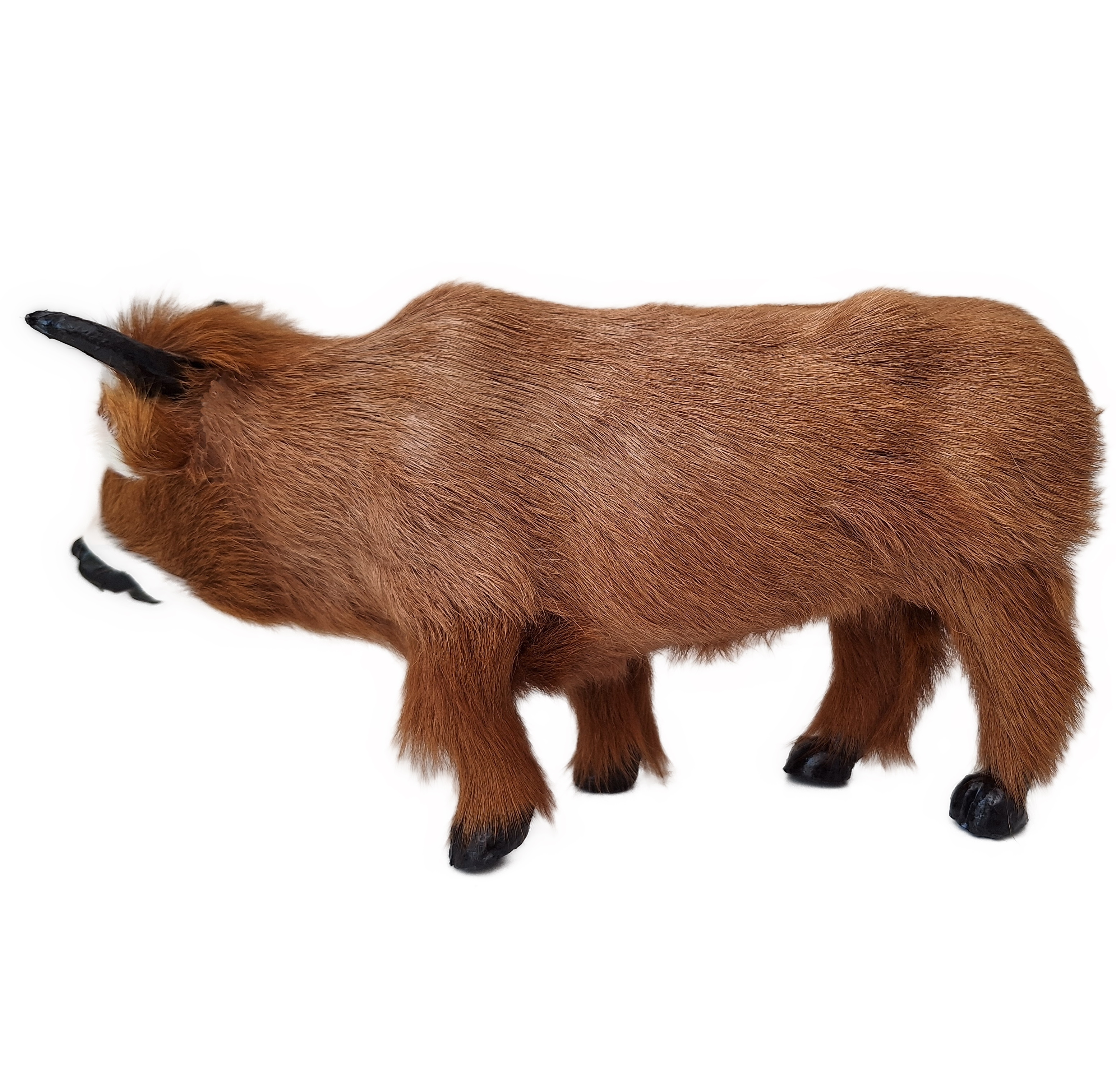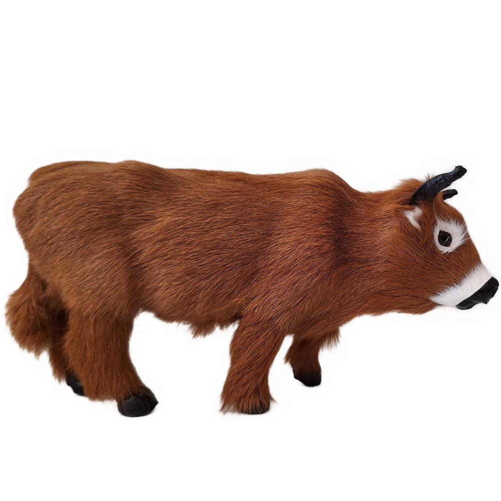 Das 18cm lange stehende Tier ist zu den Erzählfiguren ein Jungrind. Für Figuren mit ca. 20cm Höhe ist es passend als Ochse in die Weihnachtskrippe. Die Kuh/der Ochse ist sehr detailreich aus Rinderfell gefertigt.
