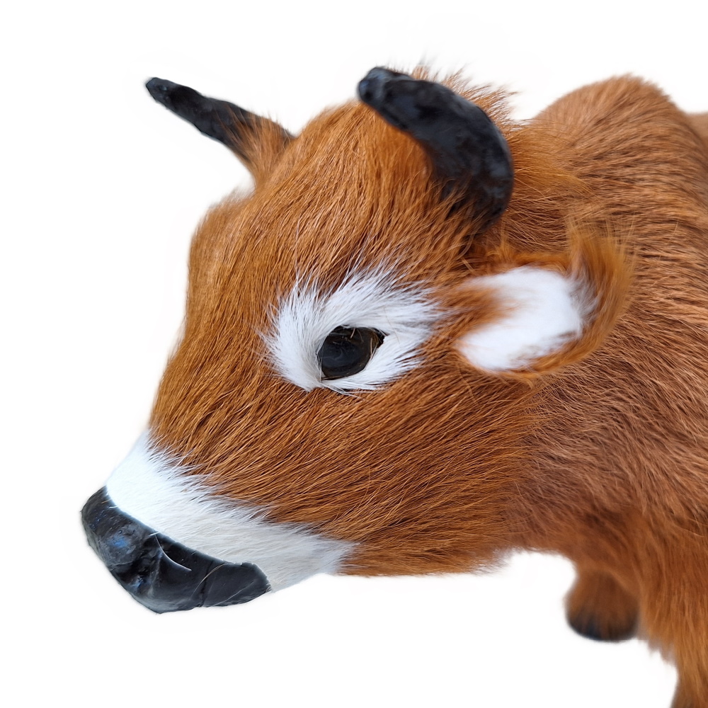 Diese Kuh/Ochse ist zu den Erzählfiguren ein Jungtier, für Figuren mit einer Höhe von ca. 20cm ist er als Ochse in die Weihnachtskrippe passend. Er ist sehr detailreich aus Rinderfell gefertigt.