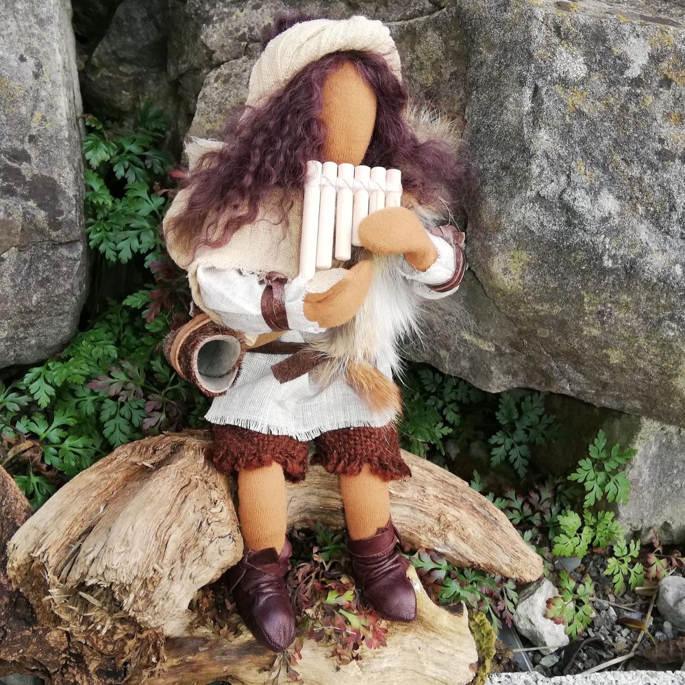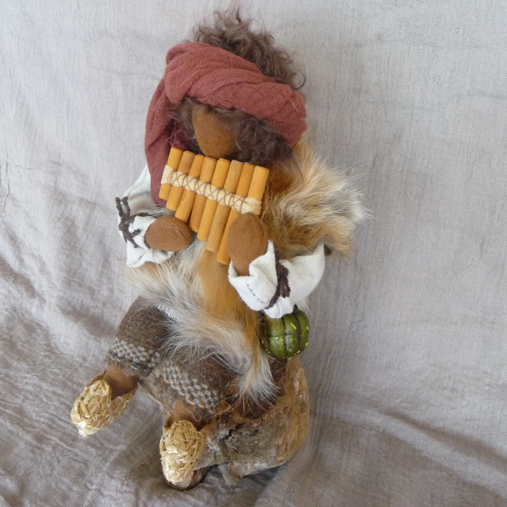 Der jugendliche Flötenspieler - 25cm hoch - sitzt ganz in seine Musik vertieft auf einer Wurzel. Er spielt ein Lied, um seine Schafe zu beruhigen, damit sie ganz in seiner Nähe bleiben. An Weihnachten darf er mit zur Krippe, um dem Jesuskind seine schönste Weise darzubringen. Wenn er gerade nicht auf der Flöte spielt, kann er natürlich auch aufstehen und für Szenen mit Kindern eine Rolle übernehmen.Die Wurzeln sammeln wir am Bodensee. Es liegt in der Natur der Sache, dass jede anders aussieht.