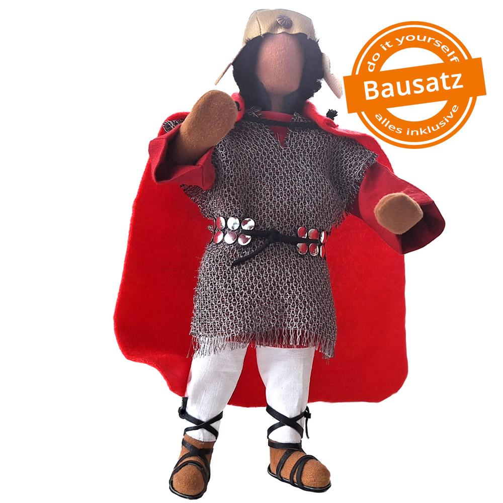 Der römische Soldat ist eine besondere Charakterfigur. Ich frage mich immer, was die oft sehr unschönen Handlungen und Taten sowie das Gehorchen müssen mit einem Soldaten machen. Sicherlich wird da mancher innerer Konflikt ausgetragen. Und sicherlich gibt es auch manch lichtvollen Gottesfunken ins Herz, um ein Umdenken in der Seele zu bewirken.Gerade auch aus diesen Gründen haben wir uns sehr liebevoll um die Gestaltung unserer Soldatenfigur gekümmert. Der handgenähte Helm sowie der Mantel gehören zur Grundausstattung. Alles weitere Zubehör kannst du je nach Wunsch separat dazu bestellen. Es sind dies ein handgefertigtes Holzschwert, ein Römerschild, ein Pilum = röm. Lanze sowie eine Geissel.