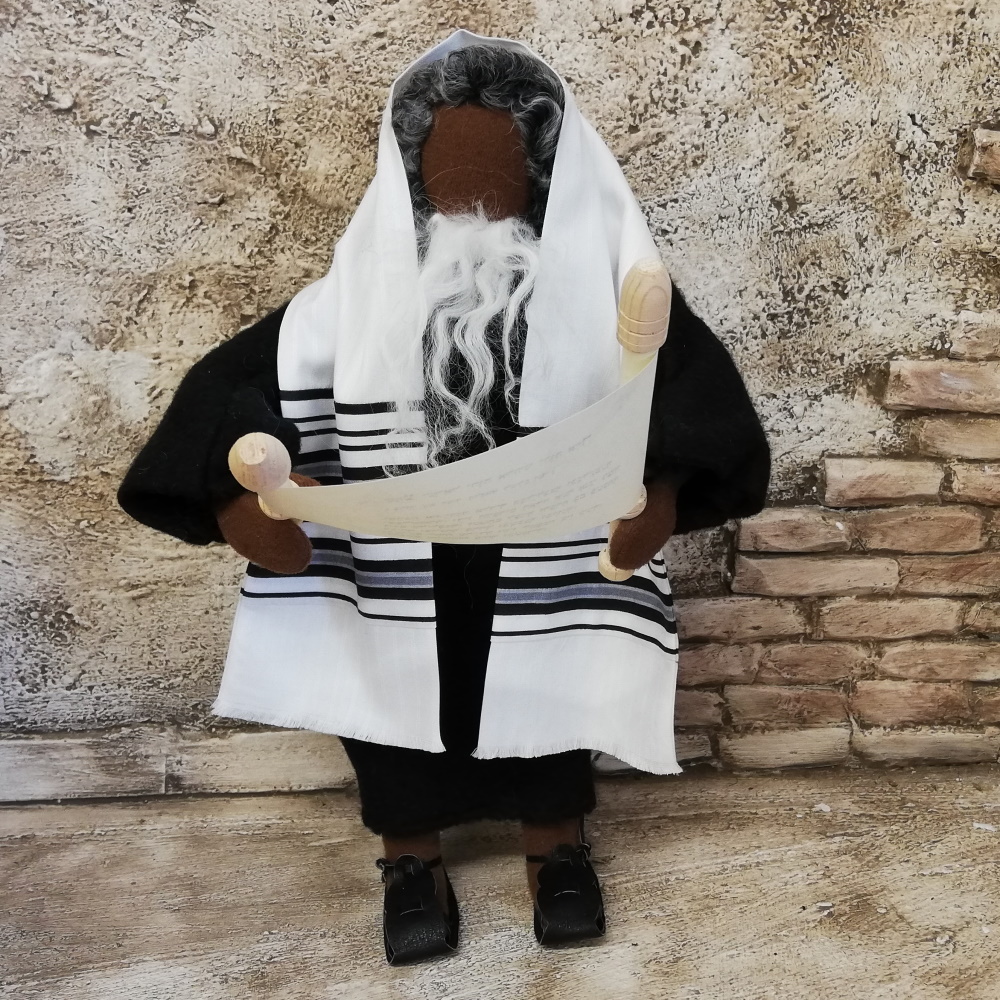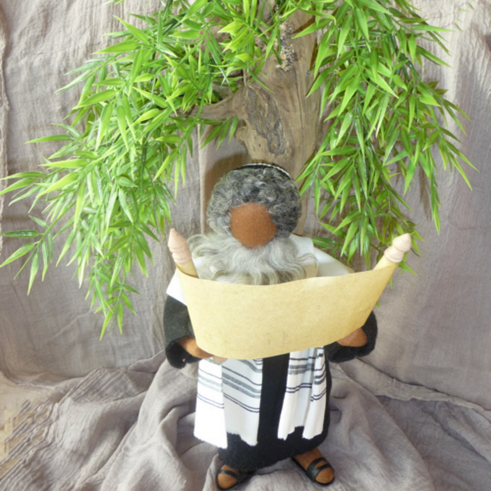 Der handgefilzter Hut passt auf Figurenköpfe von 25-30cm großen Erzählfiguren. Jeder, der schon einmal ein Werkstück gefilzt hat weiß, wie aufwändig es ist, so einen stabilen, perfekten Hut zu filzen. Der Hut hat ein schön gezopftes Hutband aus Leder.Ein Filzhut passt zu Josef, Hirten, Bauern und Händlern. Es ist wichtig, dass der Hut am Hinterkopf angelegt wird und nicht gerade auf dem Kopf sitzt. Gerne können Sie den Filzhut mit Nadeln direkt am Kopf feststecken, damit er nicht verloren geht.