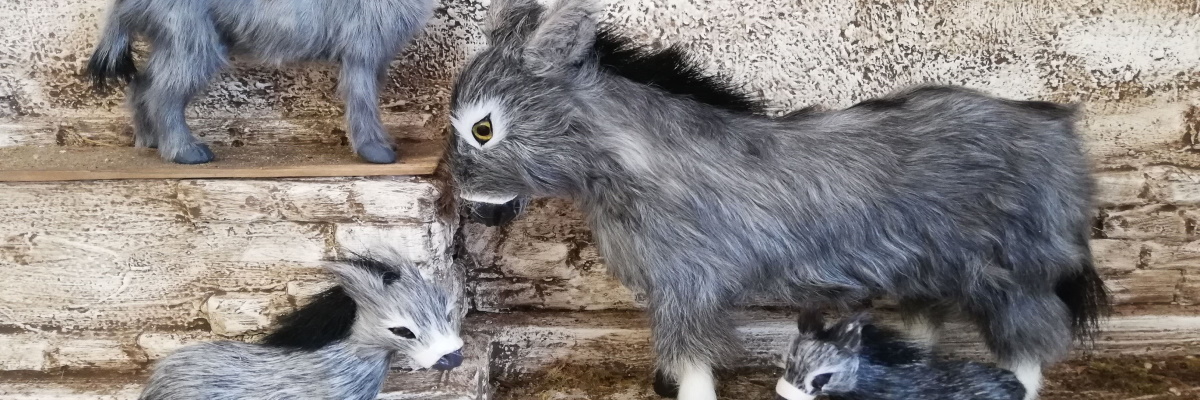 Dieser Esel ist das ausgewachsene Tier zu den 30cm hohen Erzählfiguren.Er ist 22cm lang und 18cm hoch.Die Esel sind wunderschön und exakt ins Detail gearbeitet. Das verwendete Material ist Ziegenfell.Das Naturprodukt Fell gibt jedem Tier seinen individuellen Grauton.