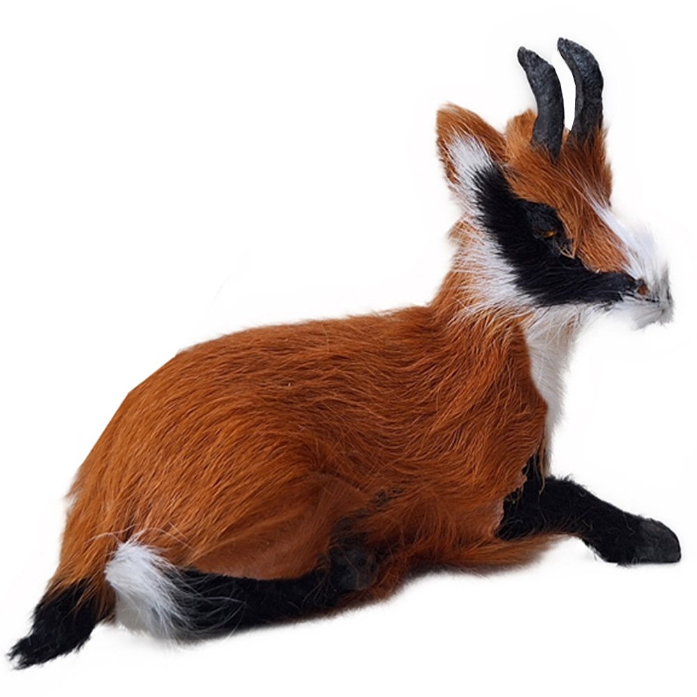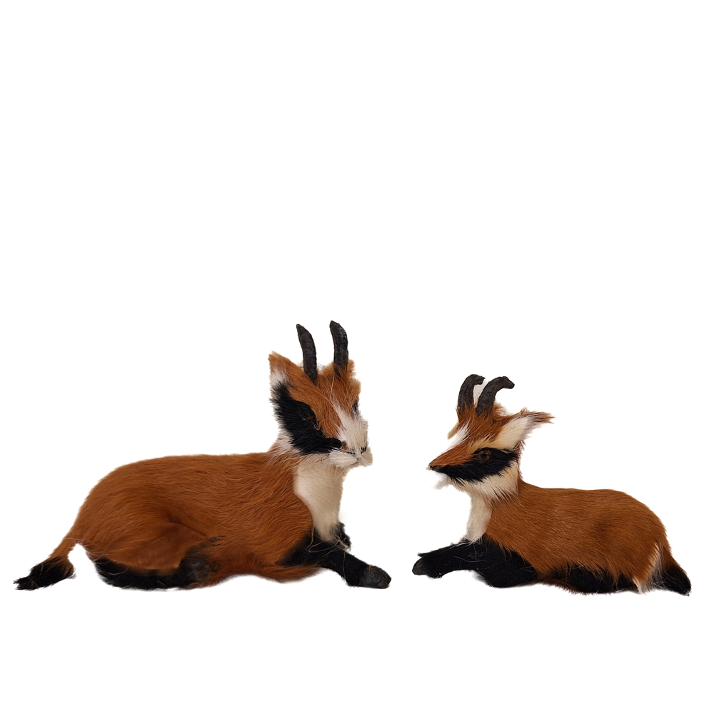 Die Ziegen sind sehr schön und detailgetreu aus Rinderfell gefertigt. Diese liegende Ziege hat gerade ein Kitz geboren.