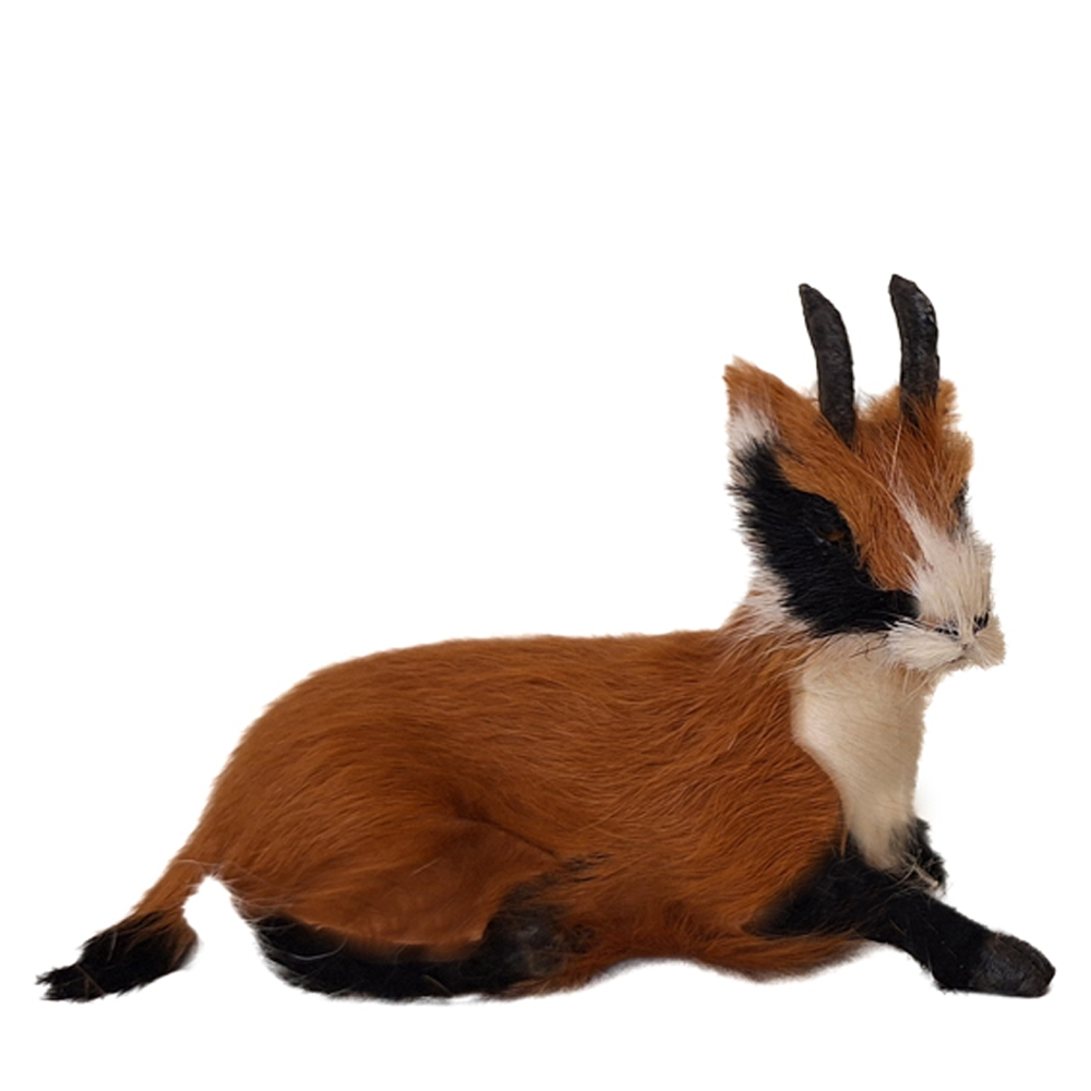 Die liegende Ziege ist gerade in der Ruhephase. Das Tier ist sehr detailreich aus Rinderfell gefertigt. 11cm lang - 8,5cm hoch