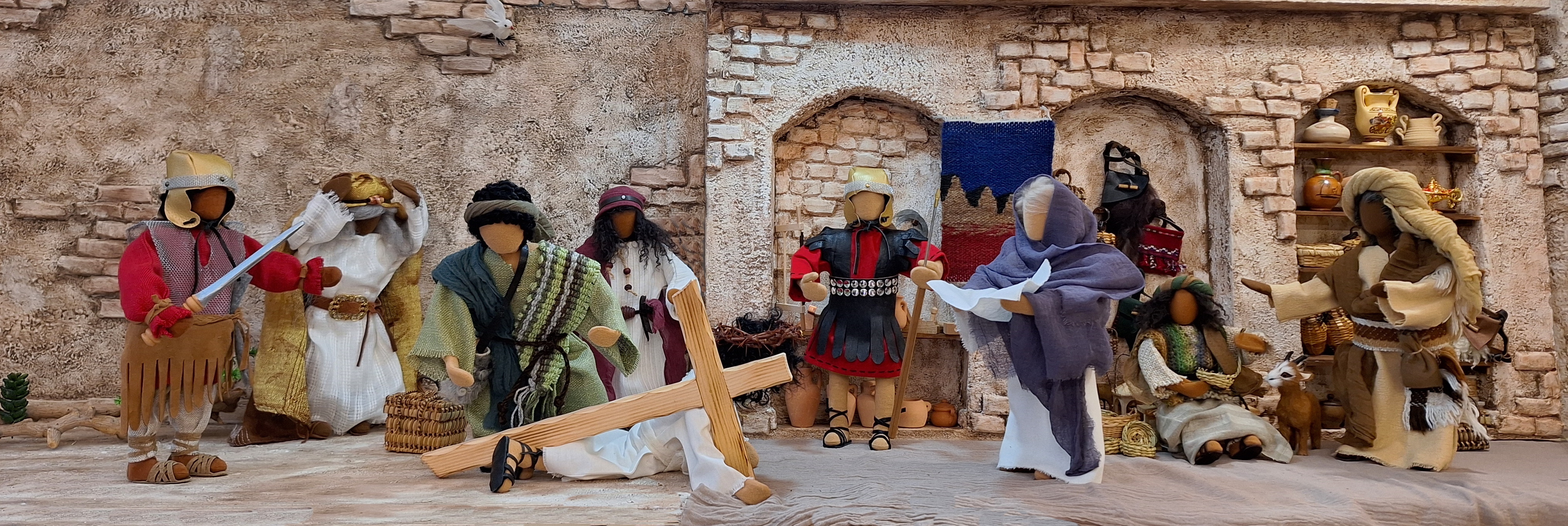 Dieses Set bietet dir alles, was du an Zubehör für die Darstellung des Kreuzwegs brauchst.* Handgefertigtes Kreuz mit Abschrägung, damit es stabil am Tisch hält, wenn Jesus es trägt.* Handgeflochtene Dornenkrone - Kinder sind begeistert davon und lernen Achtsamkeit* Soldatenmantel = Schandmantel, der Jesus von den Soldaten umgehängt wird. mit wirkungsvollem Zierverschluss* Drei Würfel, denn die Soldaten würfeln um Jesu Kleidung. Wir fertigen sie selber an, weil es keine Würfel in der richtigen Größe im Handel gibt.* Leinentuch - Veronika bietet es Jesus dar.